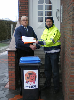 Kollegen aller Bereiche der Abfallwirtschaft beteiligten sich an der Verteilung in ihrer Freizeit und bekamen auch Unterstützung von Kollegen aus der Kernverwaltung. Auch Leserbriefe in der Tagespresse votierten eindeutig für den Erhalt der AWH in öffentlicher Hand.
